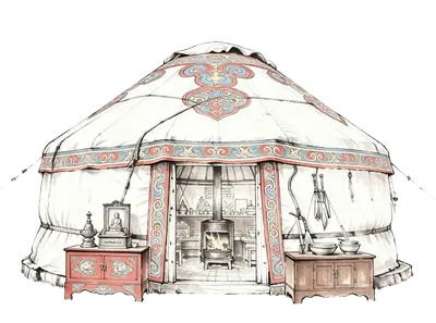 主要分布在蒙古族 / 哈萨克族 / 藏族 / 鄂温克族聚居区。轻质可移,圆形围合,随季节迁徙应对严寒。
